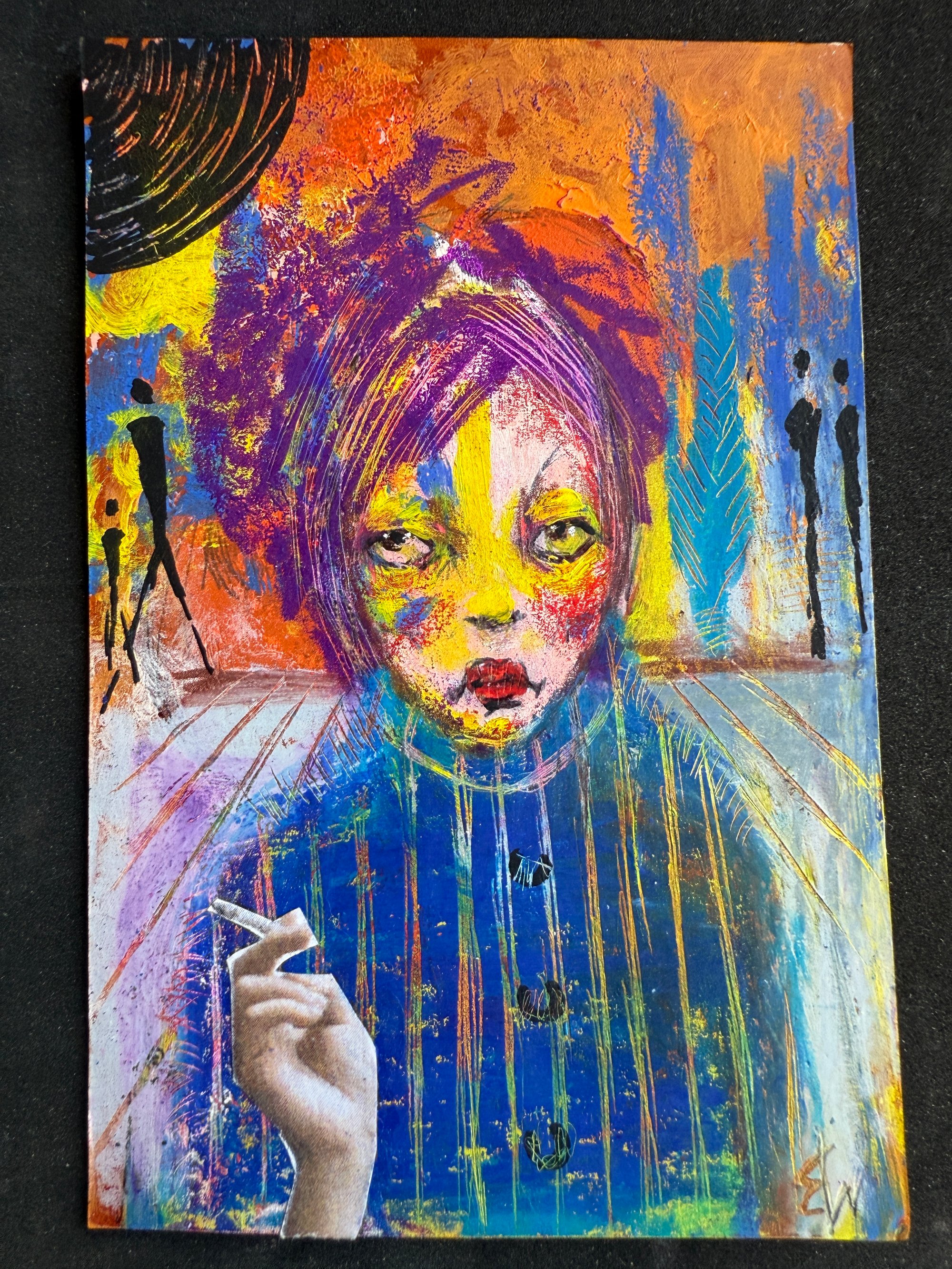 ten 4x6" postcard sized originals by artist earlyWoRm.