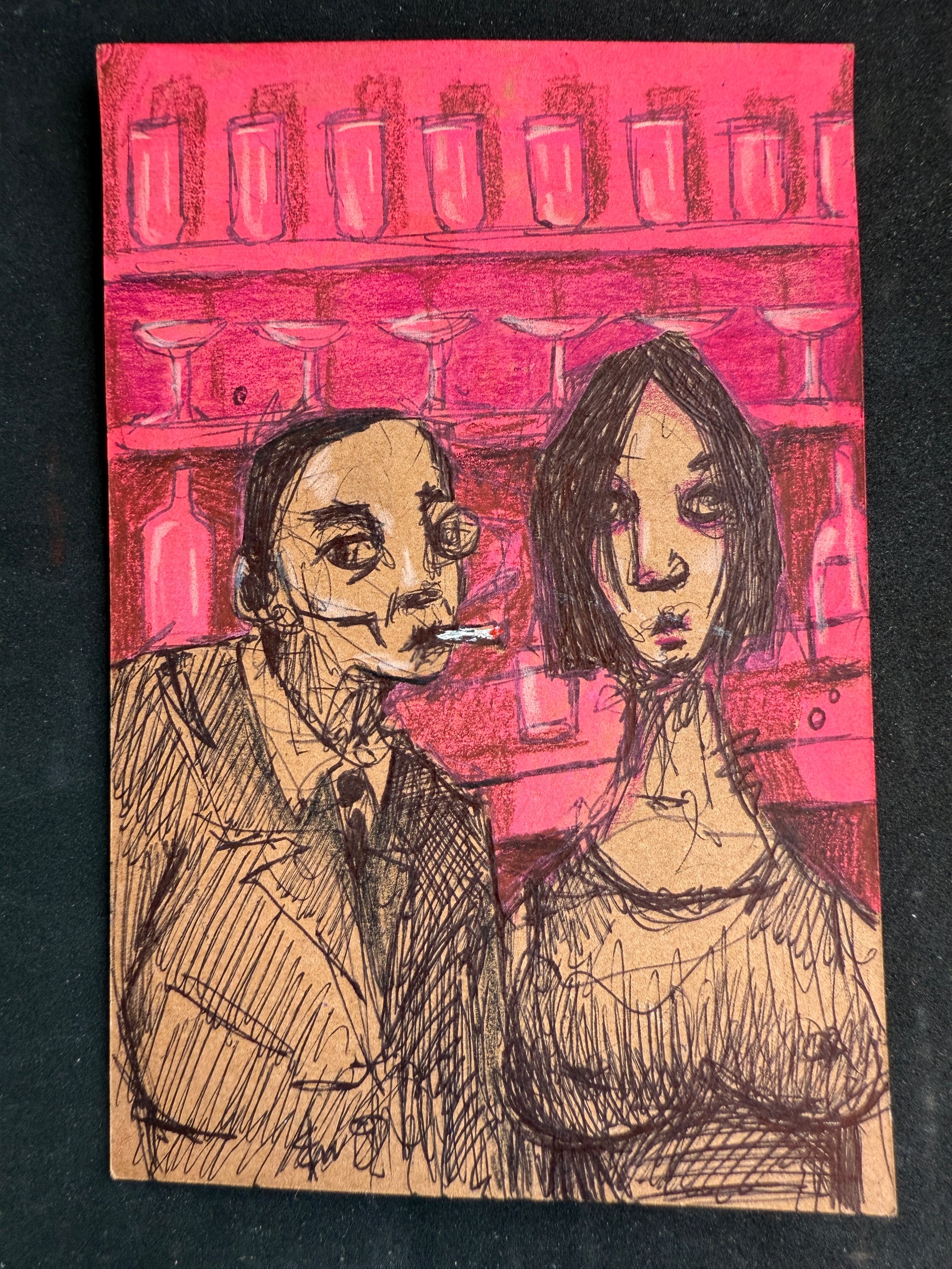 ten 4x6" postcard sized originals by artist earlyWoRm.